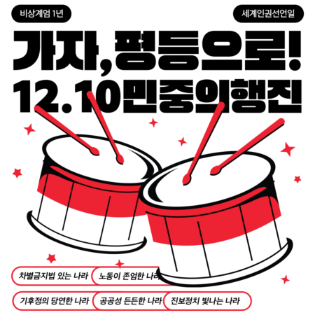 8일 전차별금지법제정연대도 12.10 세계인권선언일에 열리는 민중의 행진에 공동주최로 함께 합니다‼️