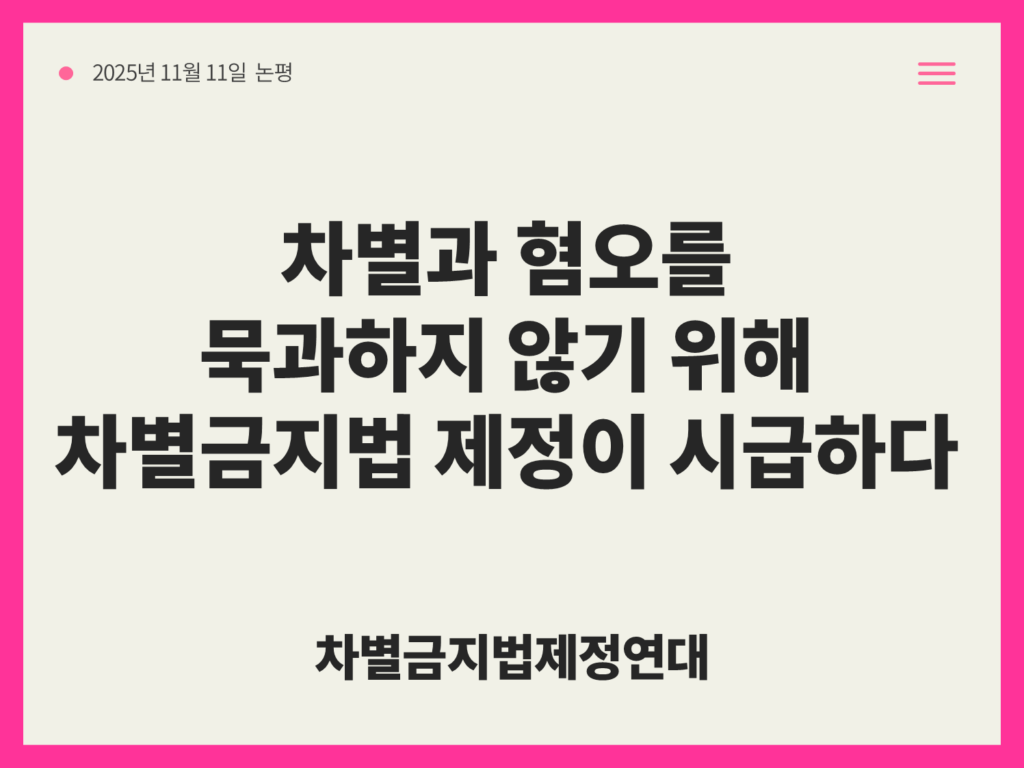 차별과 혐오를 묵과하지 않기 위해 차별금지법 제정이 시급하다