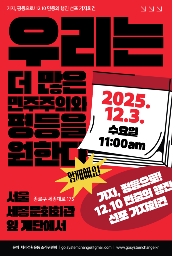 가자, 평등으로! 12.10 민중의 행진 선포 기자회견 <우리는 더 많은 민주주의와 평등을 원한다!>