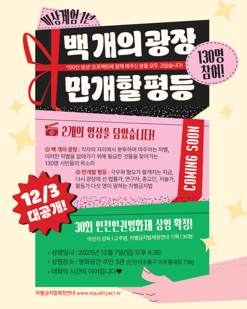 [안내] 12월 3일, 100인 영상 <백 개의 광장, 만개할 평등> 공개