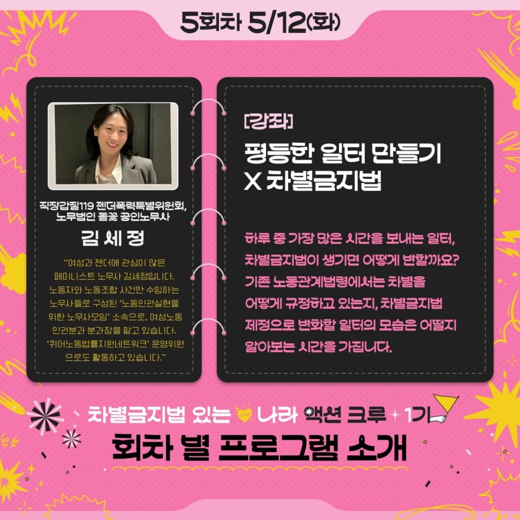 강사 : 김세정(직장갑질119 젠더폭력특별위원회, 노무법인 돌꽃 공인노무사)